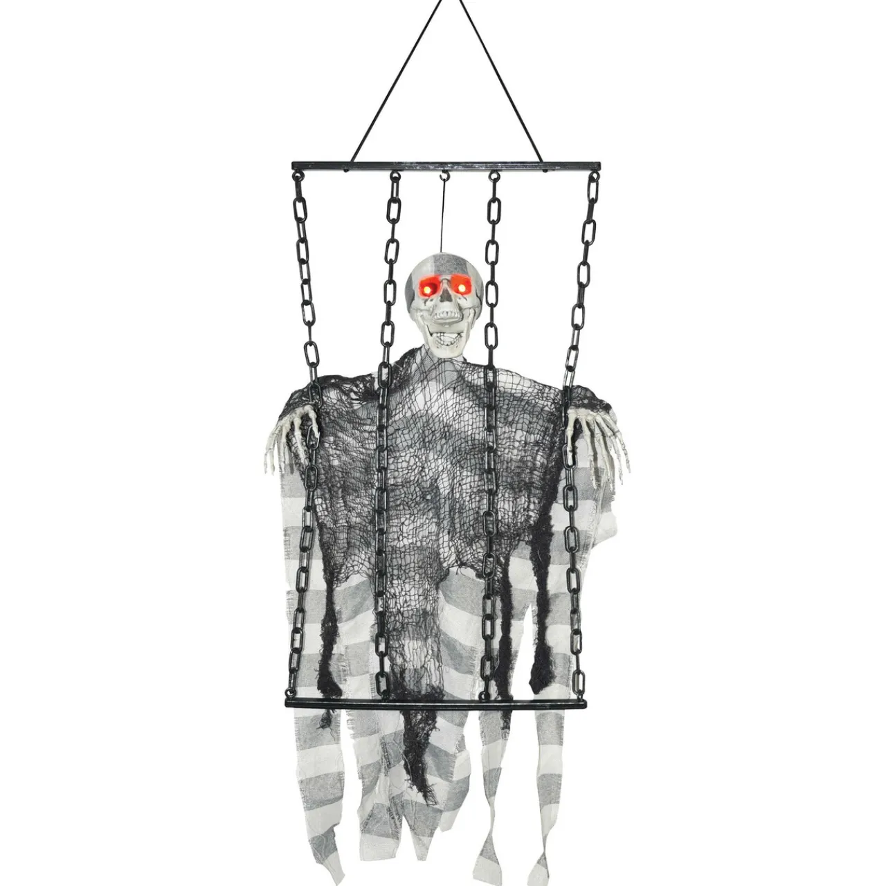 This sound activated caged slashing prisoner from The Gothic Collection is sure to scare any trick or treaters this year. With posable slashing arms, light up eyes, and spooky sounds he is a perfect addition to your Halloween decor