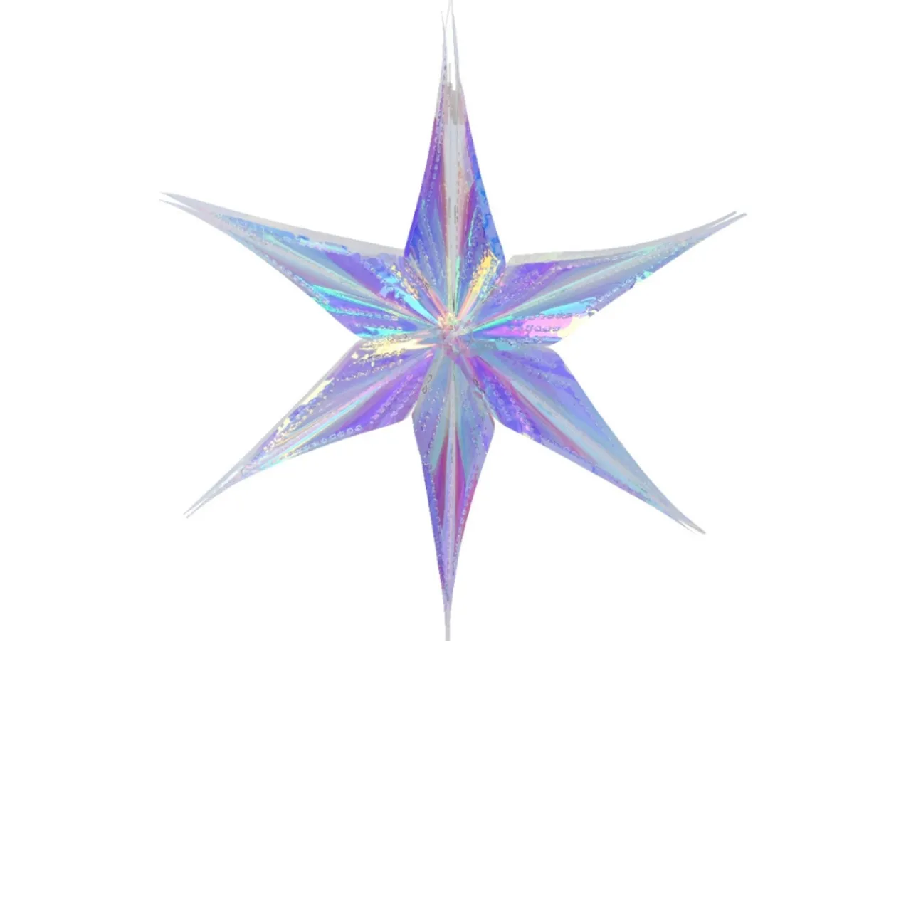 Add a touch of magic to your holiday decor with this Small Iridescent Star Ornament. Measuring 6 inches, this beautiful plastic star features a mesmerizing iridescent finish that reflects light brilliantly.