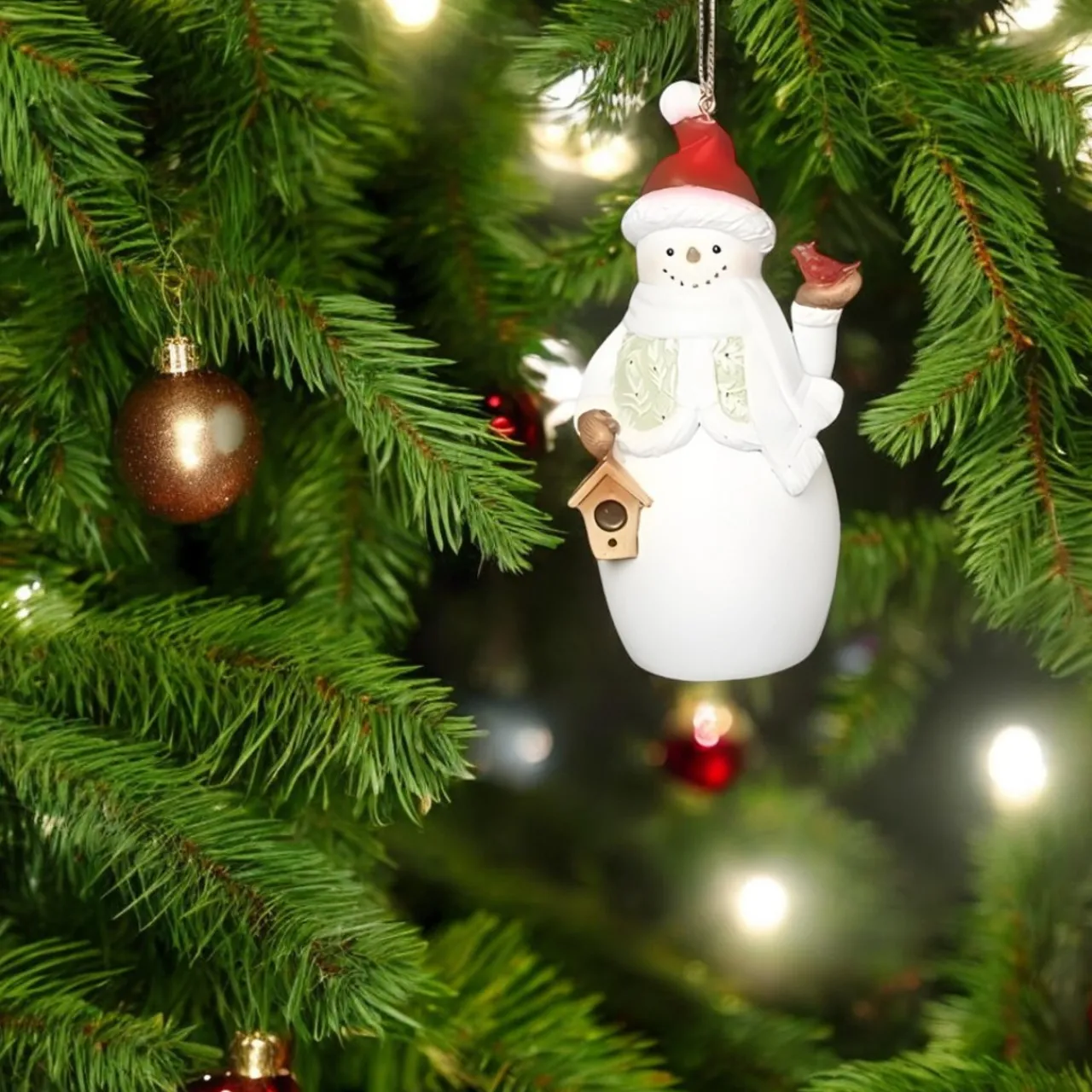 Made from durable resin, it features a sweet little birdhouse and a bright red cardinal, adding a whimsical touch. Hang it on your tree or gift it to a loved one—it’s a delightful addition to any Christmas collection!