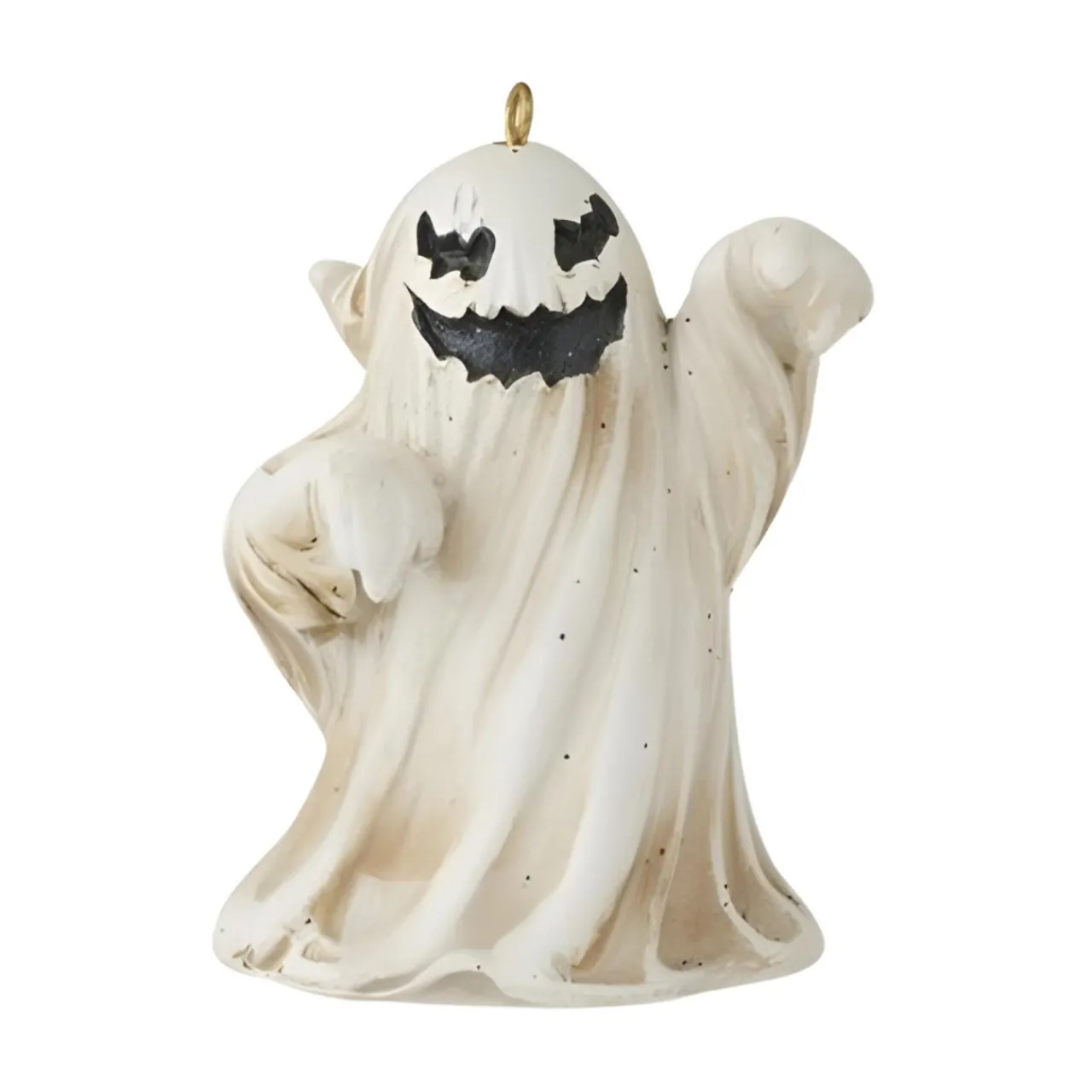 Bring a hauntingly fun element to your Halloween décor with this Spooky Ghost Ornament. Standing 4 inches tall, this ghostly figure is crafted from durable resin and ground stone, making it a perfect addition to your seasonal displays.