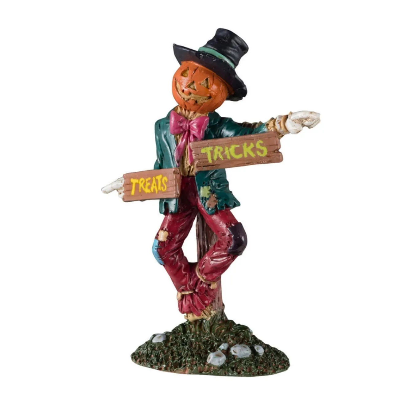 Embrace the autumn twilight as you encounter the unsettling Scarecrow Signpost in Spooky Town. This eerie figure, with arms outstretched, presents a choice between ‘tricks’ and ‘treats,’ luring unsuspecting souls into his malevolent game. Will you follow his lead, knowing that his tricks may lead to unexpected and spine-tingling adventures? The decision is yours, but stay on guard, for this scarecrow revels in misdirection, and your choice may have haunting consequences in the mysterious world of Spooky Town.