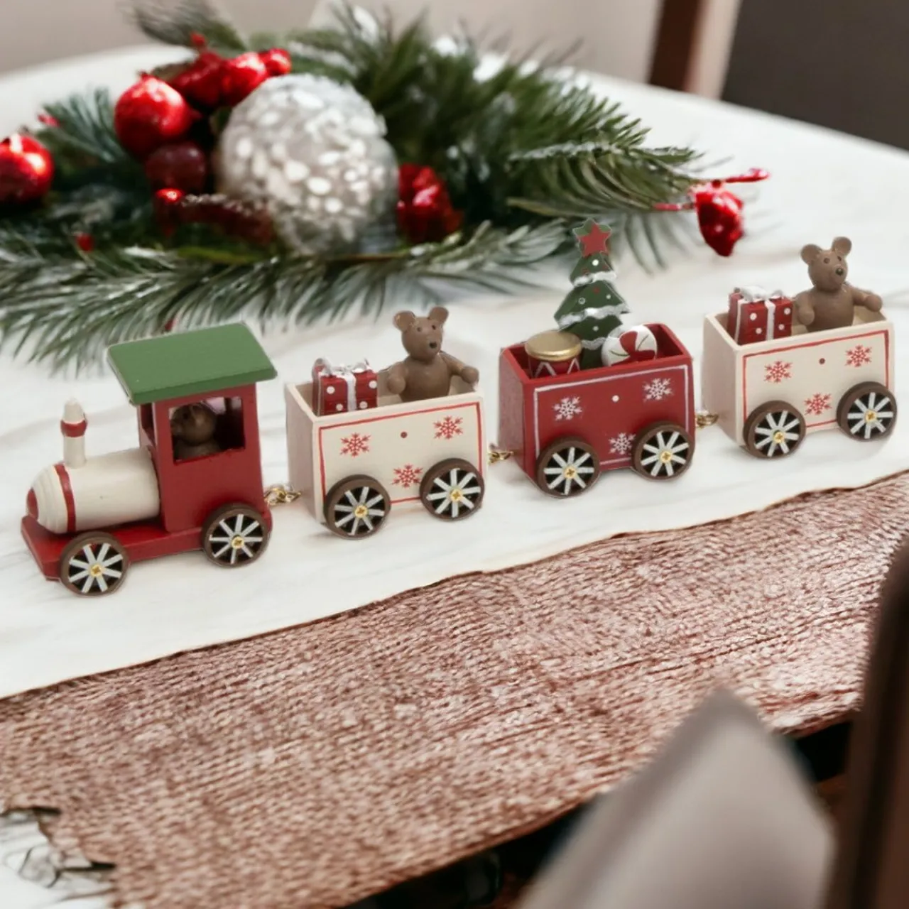 - Material: Hand-painted, durable festive train set
