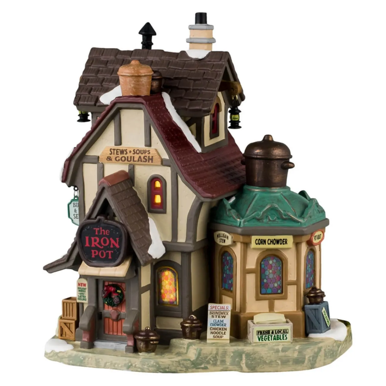 Indulge in culinary delights at The Iron Pot, a porcelain lighted building from Caddington Village. This 2024 release, measuring 7.28 x 6.69 x 4.53 inches, offers a classic and warm dining experience. Specializing in hearty stews, farm-fresh veggies, and soul-soothing soups, its ambiance is filled with irresistible aromas, perfect for joyously shared meals during the holiday season. Equipped with an on/off switch, it’s a gastronomic haven for any festive collection.