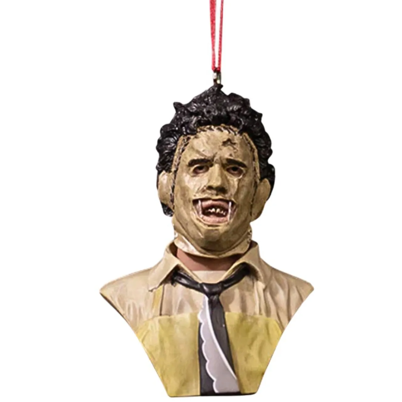 Bring a touch of horror to your holiday decor with the Leatherface Ornament from The Texas Chainsaw Massacre. This detailed ornament perfectly captures the terrifying Leatherface in his iconic attire.