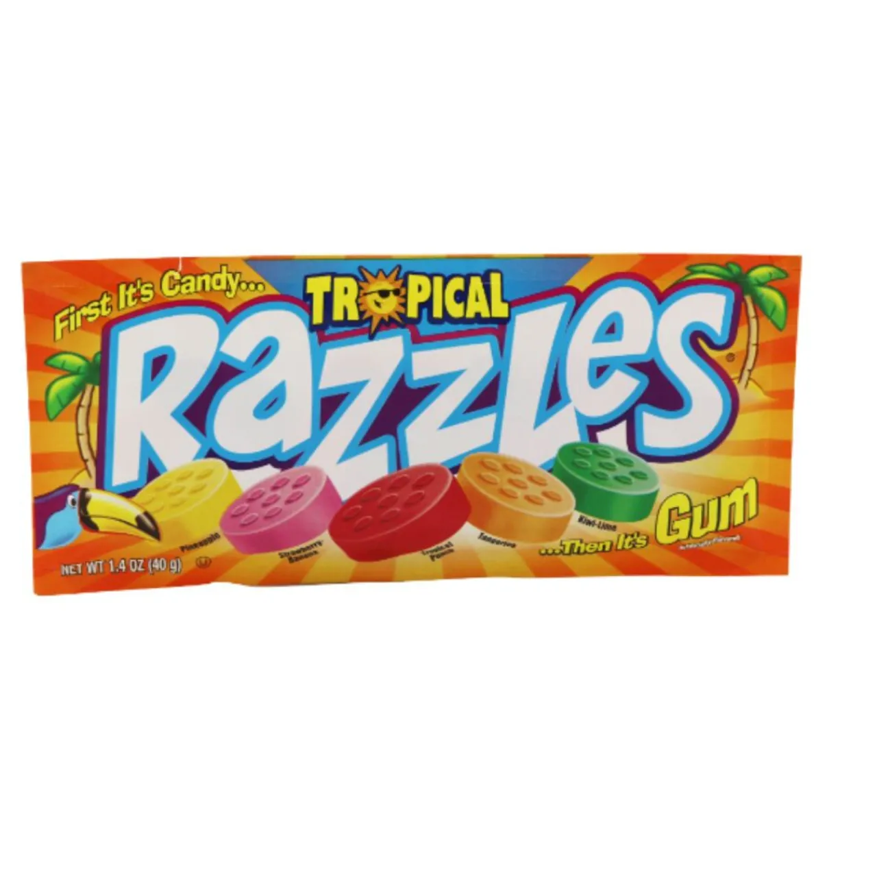 Tropical Razzles offer a unique twist on the classic candy that turns into gum. This 1.4 oz pack is bursting with tropical flavors like pineapple, kiwi, and strawberry. Start with a crunchy bite and watch as it magically transforms into a chewy gum, enhancing your tasting experience.