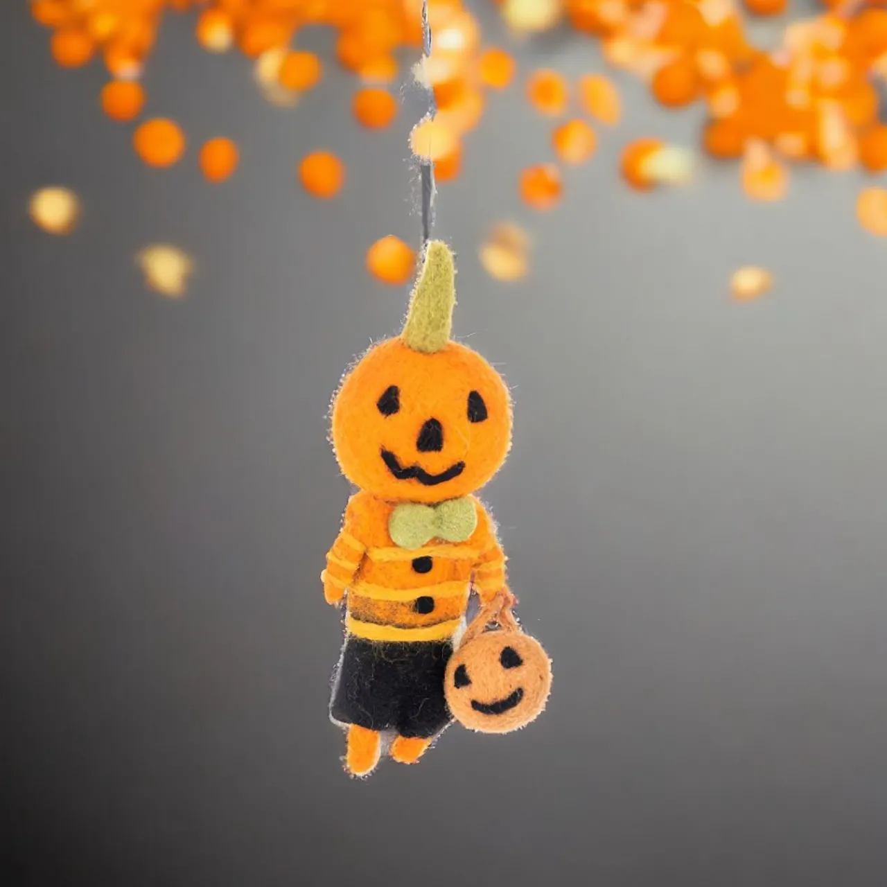 Made from high-quality wool, this charming ornament is perfect for hanging on doors, windows, or anywhere you want to add a festive touch. Brighten up your Halloween decor with this unique and playful piece that will delight kids and adults alike.